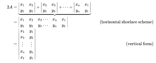 Given the n vertices of a polygon, we can compute the area of the polygon by using the Shoelace formula, like a 2D determinant: