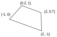 The area of the polygon defined with the vertices {(-1,0), (0.2,1), (2,0.7), (2,-1)} is